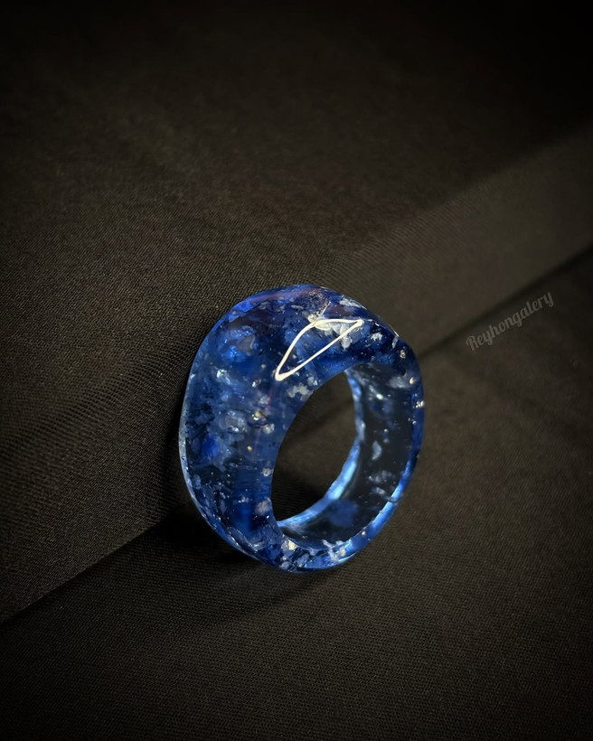 انگشتر سنگ ابسیدین آبی کاملا دستساز