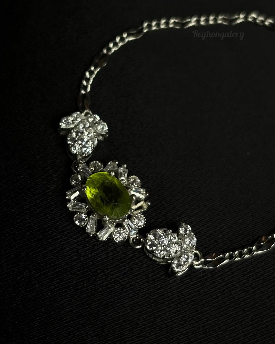 دستبند نقره ۹۲۵ با آبکاری طلا و زبرجد آفریقایی سایز : ۶×‌۸ میلی متر