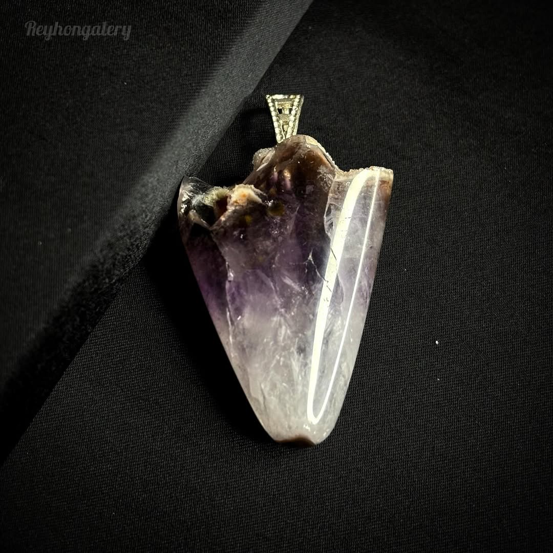 گردنبند سنگ آمیتیست اصل با حلقه آویز نقره کاملا دستساز