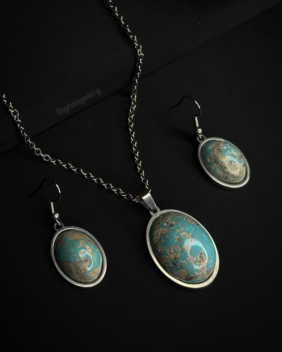 نیمست فیروزه با رکاب و زنجیر استیل ضدحساسیت