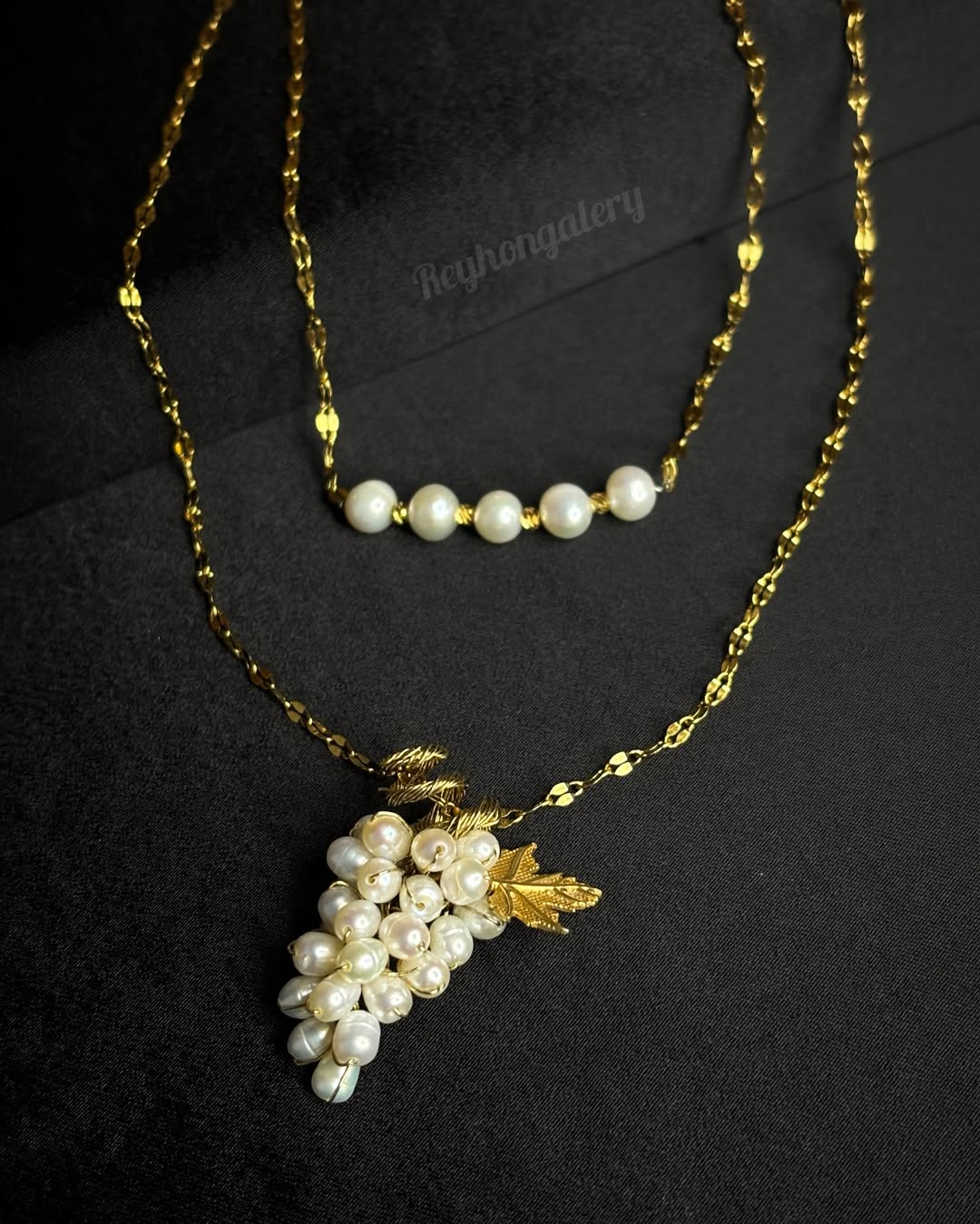 گردنبند مروارید با اویز فیروزه نیشابور و گوی و قفل نقره ابکاری طلا