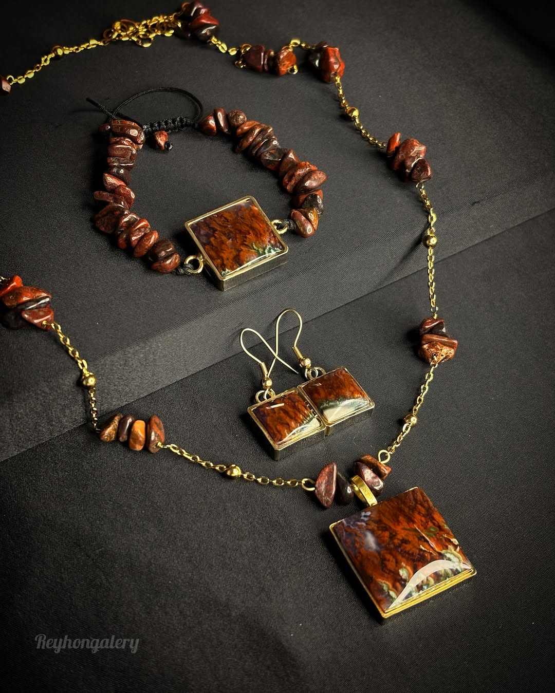 انگشتر عقیق شجر پاییزی کاملا دستساز