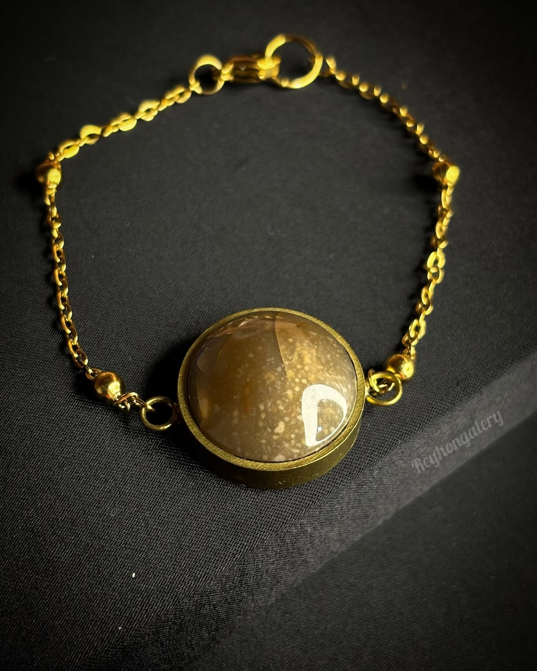 دستبند عقیق خرمایی با زنجیر استیل ضدحساسیت و رکاب برنجی